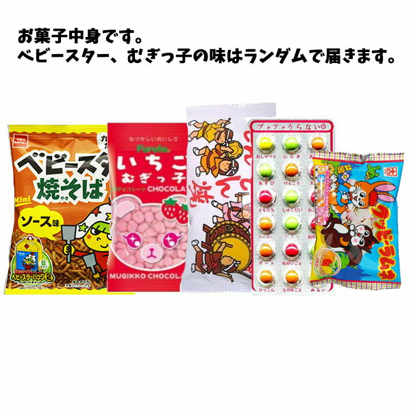 サイズ 約 80×35cm 素材 綿 お菓子 お菓子の中身はベビースターラーメン、むぎっ子の味はランダムで、その他は写真の内容になります。