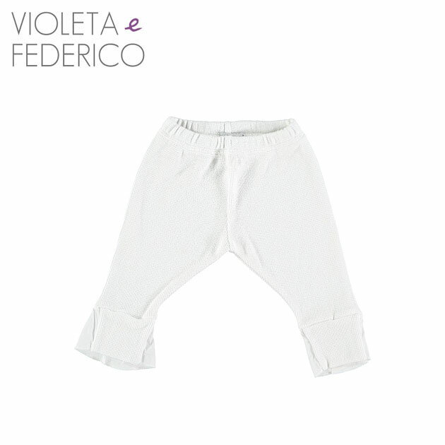 ≪Violeta e Federico≫ ヴィオレタ・エ・フェデリコ無地 ワッフル レギンス スパッツ フレア 異素材 ホワイト 白 Legging VIO Cua Bone【1歳/1歳6ヶ月】【女の子/男の子】